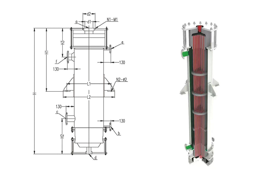 列管式石墨換熱器主要用于物料的加熱、冷卻、冷凝、蒸發(fā)和吸收,能承受大多數(shù)有機或無機介質。