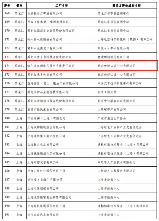 九洲集团近日再添新成绩。近日工信部办公厅公布第五批绿色制造名单,其中,绿色工厂719家、绿色设计产品1073种、绿色工业园区53家、绿色供应链管理企业99家。作为制造业绿色转型的代表,九洲集团全资子公司——哈尔滨九洲电气技术有限责任公司赫然在列。
